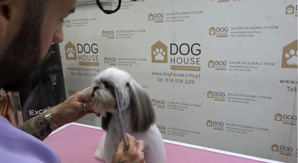 Prowadzący wykona grooming na psie rasy Shihtzu